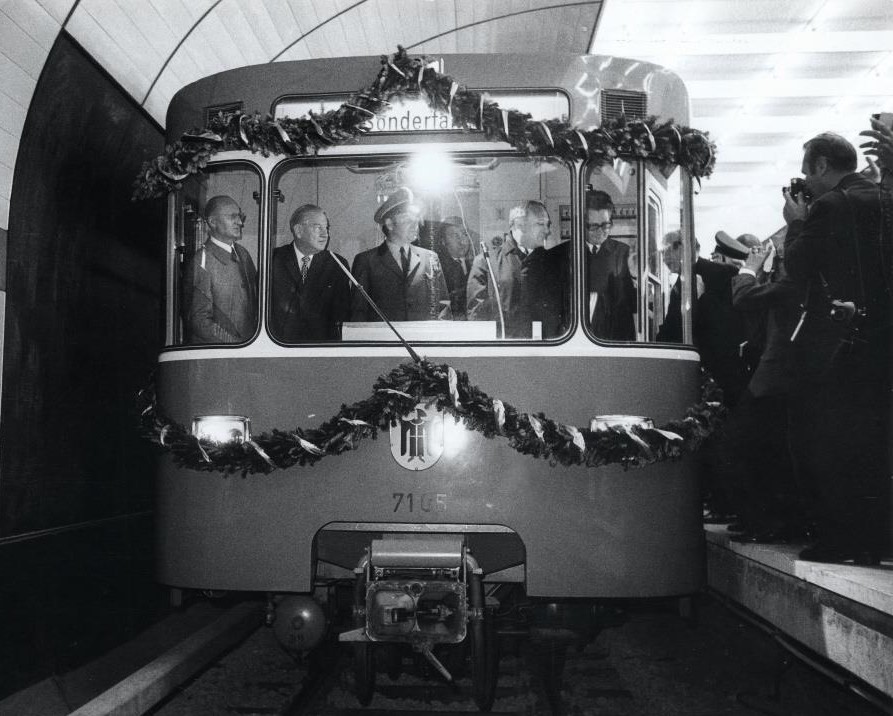 Inbetriebnahme der Münchner U-Bahn am 19. Oktober 1971, mit Ministerpräsident Alfons Goppel und Münchens OB Hans-Jochen Vogel